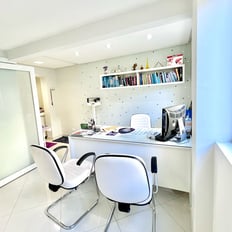 O consultório combina um design calmo com um ambiente acolhedor, pensado para oferecer a quem a procura uma experiência confortável e única desde o momento da entrada.